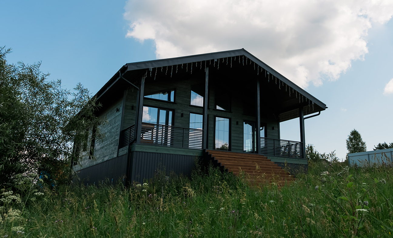 Этот современный дом выполнен в комплектации «Тёплый контур», что означает полностью готовые коммуникации и качественную внешнюю отделку, но без внутренней чистовой отделки — идеальный вариант для тех, кто хочет сделать интерьер по своему вкусу.